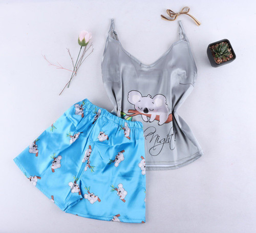 ست شورت وسوتین اسفنجی حریر گردنی دخترانه فانتزی
