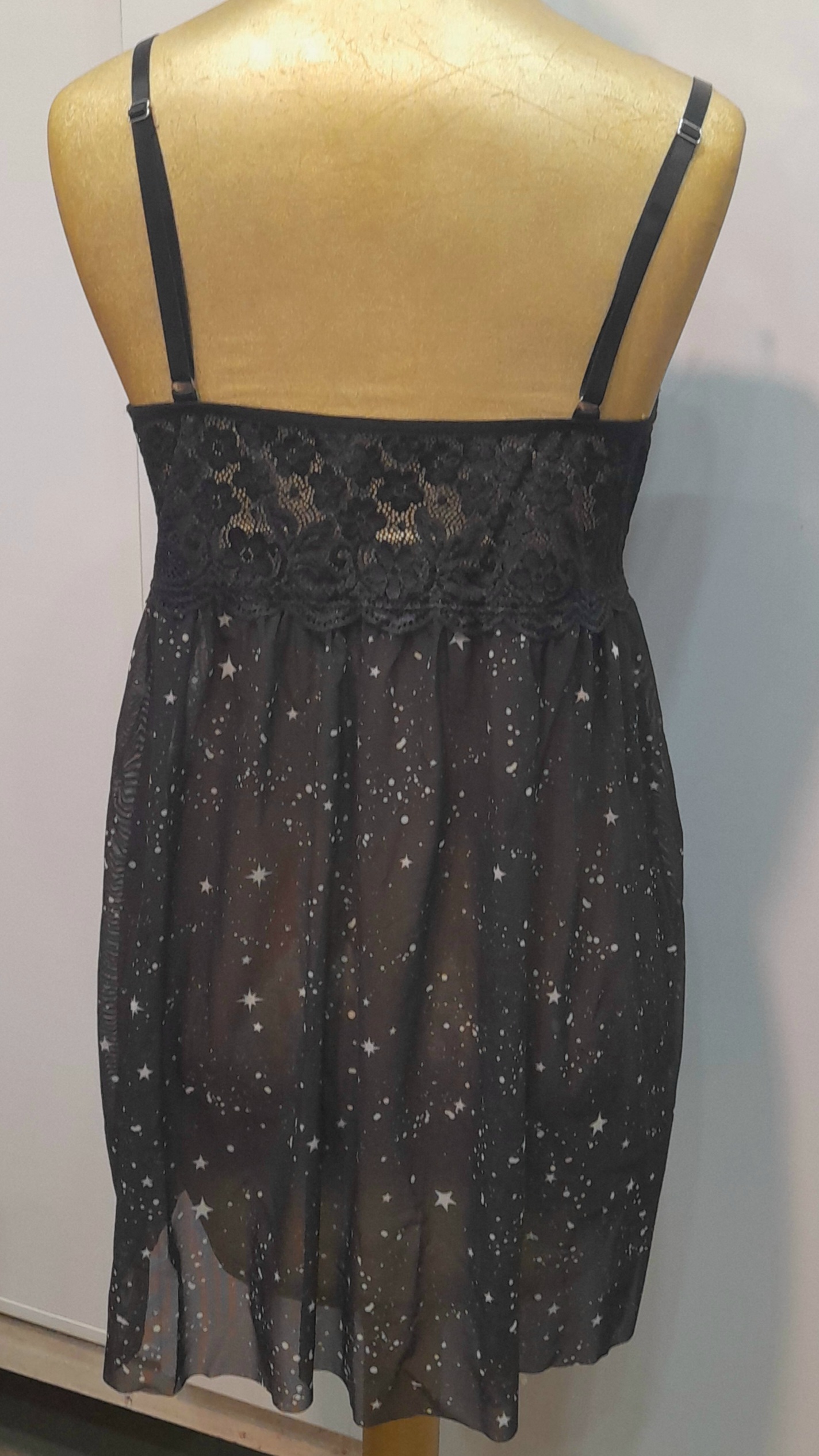 لباس خواب کوتاه بالاتنه گیپور هارنسی ودامن حریر طرحدار