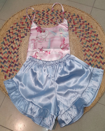 ست شورت وسوتین اسفنجی حریر گردنی دخترانه فانتزی