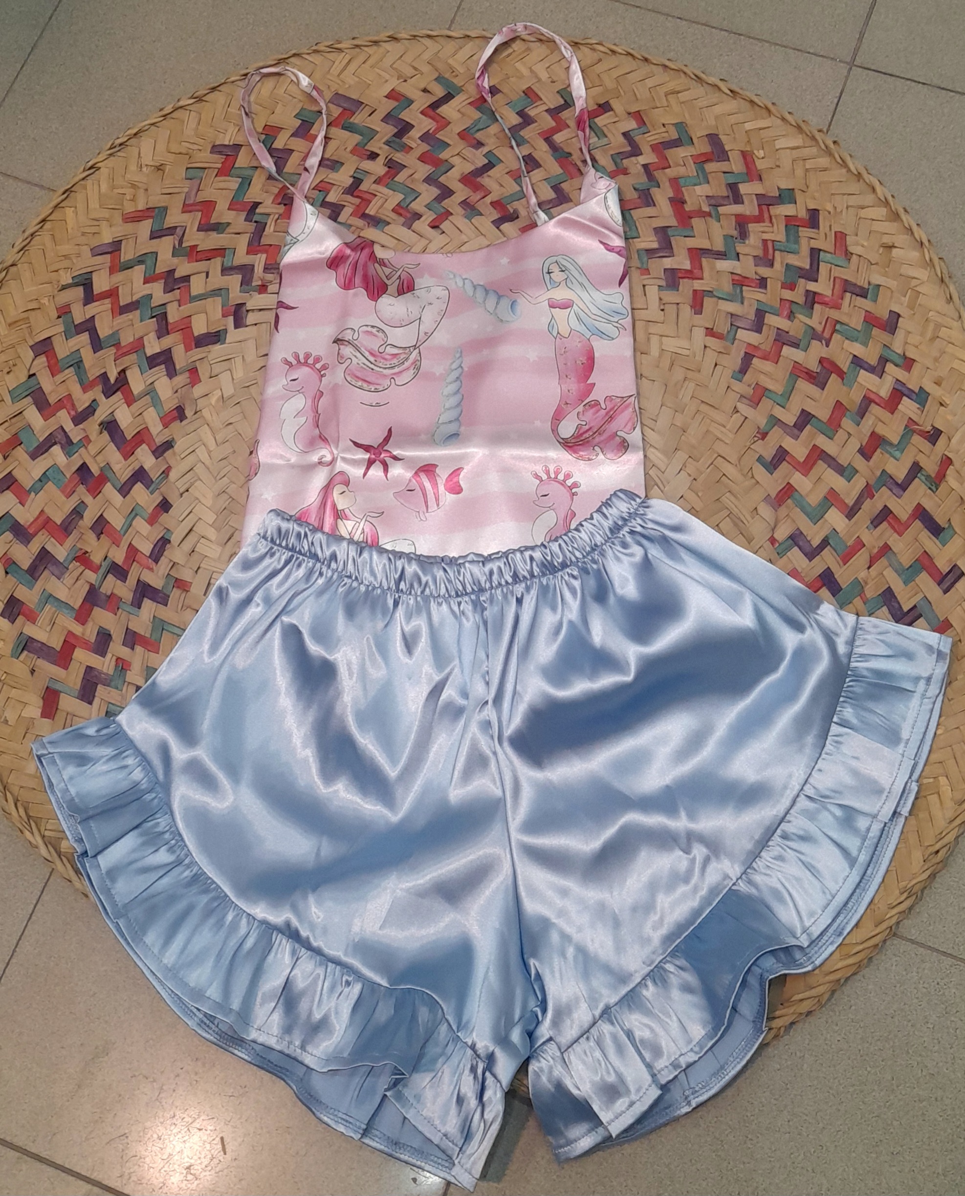 ست تاپ وشورت ساتن طرحدار قواره دار